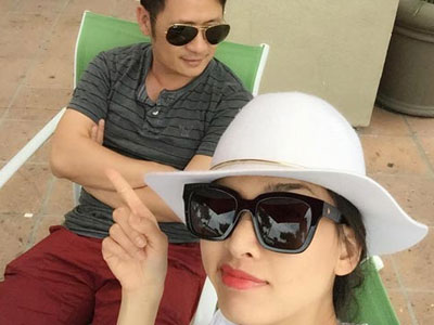 Diễn viên 'Vườn sao băng' cùng chồng và con gái đi dạo chơi ở Đài Bắc hôm cuối tuần.