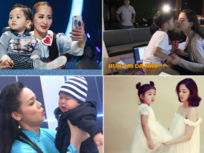 Công việc bận rộn khiến Hồ Ngọc Hà, Khánh Thi... phải tranh thủ từng phút nghỉ ngơi trong các buổi ghi hình để được ở bên con.