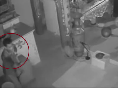 Clip: Trộm vét sạch 2 thùng tiền công đức trong chùa