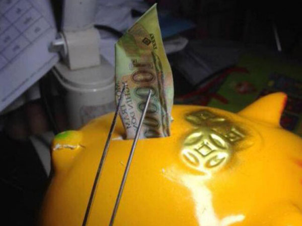 Những bức ảnh dùng nhíp "câu tiền" trong bụng heo đất khiến ai nấy đều phì cười và nhớ về những ngày tháng còn bé, cứ khổ sở, vật vã mãi với việc tiết kiệm, vừa bỏ tiền vào heo hôm trước, hôm sau đax nghĩ trăm phườn nghìn kế moi ra.
