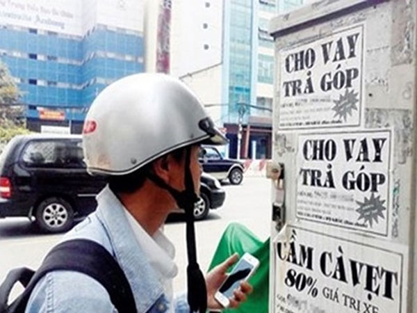 Những quảng cáo cho vay không thế chấp tại các cột đèn cột điện thường có lãi suất "cắt cổ" lên đến 10-30% một tháng.