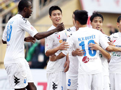 Trang 1Khuất phục Hà Nội T&T, SLNA vào top 4