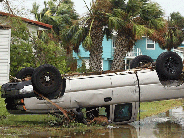 Siêu bão Harvey đi qua Texas, để lại những tàn phá khủng khiếp với nhiều nhà cửa bị thổi tung mái, tường đổ sập trong khi ôtô bị thổi lật nhào trong gió giật mạnh.