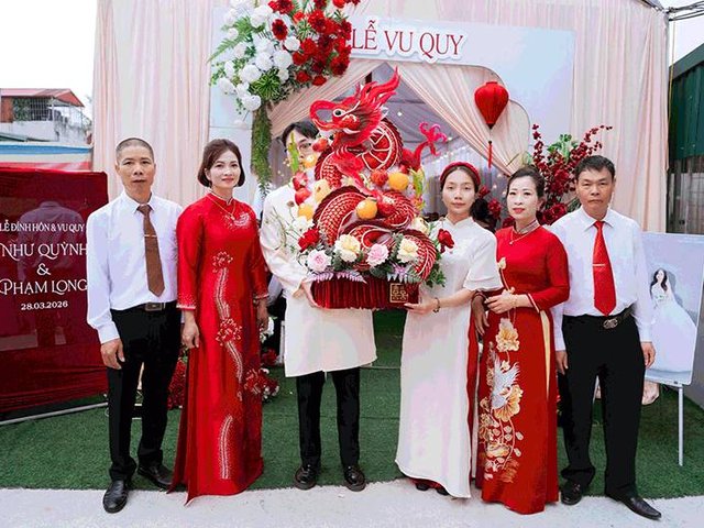 Dù đôi uyên ương không thể có mặt trực tiếp do khoảng cách địa lý, một hôn lễ đầy đủ nghi thức truyền thống vẫn được tổ chức trang trọng tại Quảng Ninh, thu hút sự chú ý mạnh mẽ từ cộng đồng mạng.