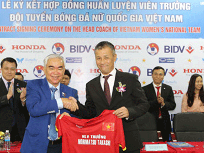Chiều 4/3, VFF đã tổ chức lễ ký hợp đồng và công bố HLV Norimatsu Takashi đảm nhận cương vị HLV trưởng ĐTQG nữ thi đấu tại giải bóng đá nữ vô địch ĐNÁ 2015 và vòng loại Olympic 2016.