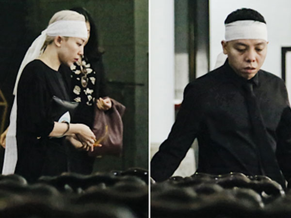Trang 1Tóc Tiên quấn khăn tang, đứng cùng gia đình tại tang lễ của mẹ Hoàng Touliver