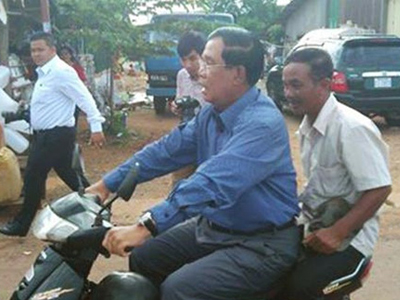 Thủ tướng Campuchia đi xe máy không đội mũ bảo hiểm, bị công an bắt