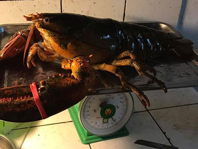 Trên thế giới mới chỉ xuất hiện 2-3 con có màu sắc này và chiều dài chỉ ở mức 30-35 cm. Với con tôm hùm xanh về Việt Nam đây là con có kích cỡ thuộc top "khổng lồ".