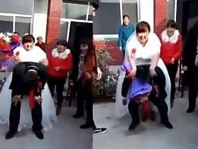 Trong đám cưới chú rể đã rất cố gắng để cõng cô dâu ra khỏ nhà nhưng do cô dâu nặng 100kg nên chú rể không thể nào cõng được.