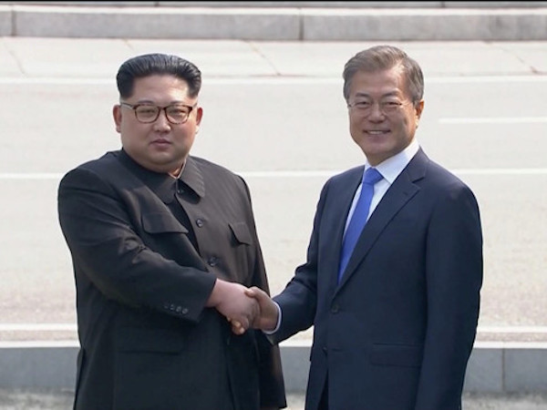 Kim Jong-un lần đầu bước qua giới tuyến quân sự hai miền, bắt tay và bước vào phòng hội đàm cùng Tổng thống Hàn Quốc tại làng đình chiến Panmunjom, bên trong Khu Phi quân sự liên Triều.