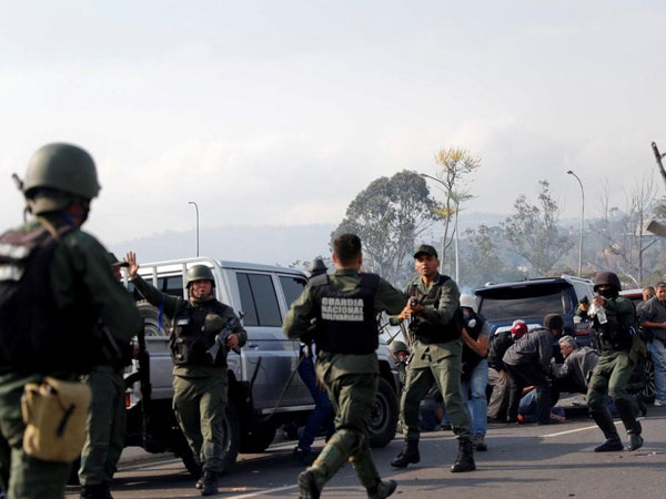 Tiếng súng nổ và hơi cay xuất hiện gần căn cứ La Carlota ở Caracas khi những người ủng hộ phe đối lập đụng độ quân đội Venezuela.