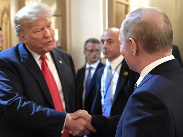 Tổng thống Mỹ Donald Trump đứng trên thảm đỏ, tươi cười chào đón người đồng cấp Nga Vladimir Putin bước xuống từ chuyên cơ. Hai nhà lãnh đạo bắt tay, vỗ vai nhau và trao nhau những nụ cười cùng lời chào. Sau đó, họ chụp chung một bức ảnh trước khi ông Putin lên xe của ông Trump và rời đi.