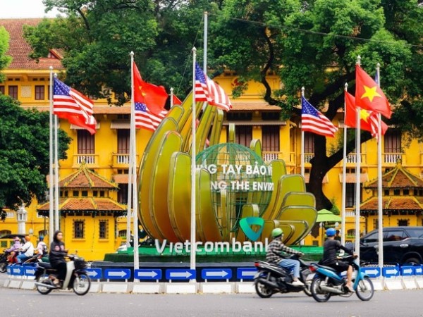 Cờ 2 nước Việt Nam và Mỹ được treo dọc nhiều tuyến phố ở Hà Nội, chào đón Tổng thống Mỹ Joe Biden thăm cấp Nhà nước đến Việt Nam