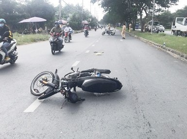 Ra hiệu dừng xe máy chạy quá tốc độ, trung tá Phạm Tân Nhân bị nam thanh niên 17 tuổi tông thẳng vào người.