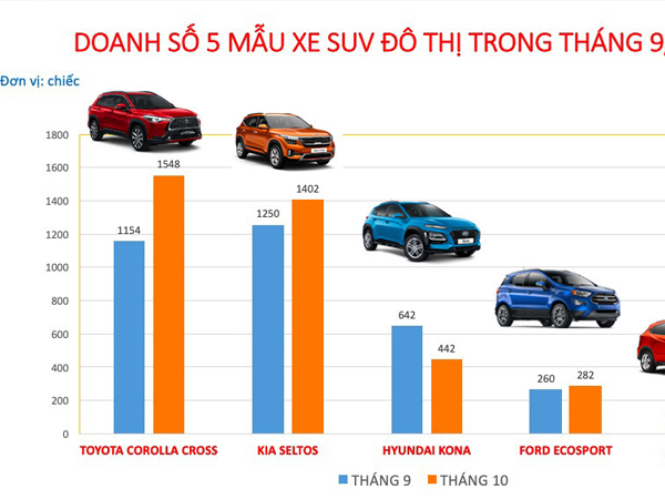 Sự góp mặt của những tân binh như Kia Seltos và Toyota Corolla Cross đã khiến nhóm xe SUV 5 chỗ cỡ nhỏ (SUV đô thị) sôi động trở lại, đồng thời phá thế “độc tôn” của Hyundai Kona trong 2 năm liền.