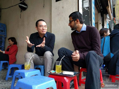 CEO Google ăn kẹo dồi chó, ngồi trà chanh vỉa hè Hà Nội "chém gió" với Nguyễn Hà Đông