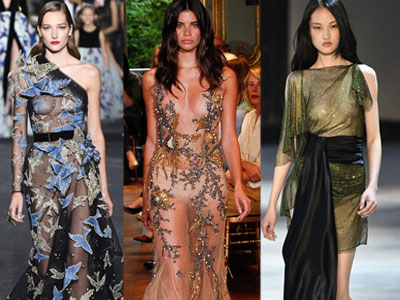 Valentino, Elie Saab... cuốn hút người xem bằng các thiết kế xuyên thấu khoe nét đẹp cơ thể.