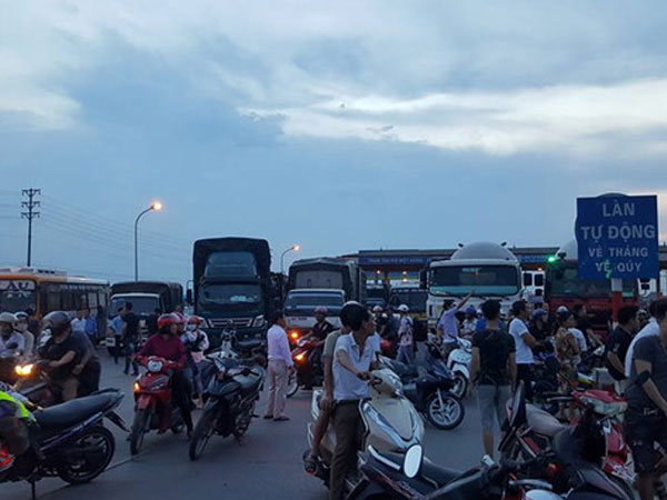 Dân tiếp tục vây BOT quốc lộ 5, ùn tắc kéo dài hàng cây số