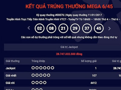 Sáng 8/2, cùng lúc 3 khách hàng đã được Công ty Xổ số điện toán Việt Nam (Vietlott) trao giải Jackpot – Mega 6/45 với tổng số tiền 126,8 tỷ đồng.