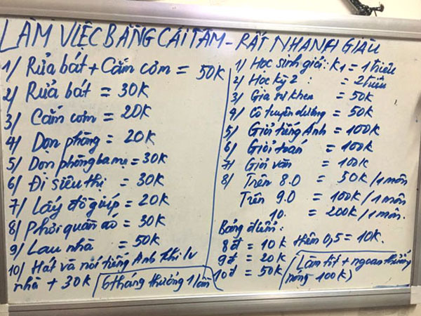 Bố mẹ lo sẽ thành "con nợ" khi con trai soạn bảng báo giá việc nhà