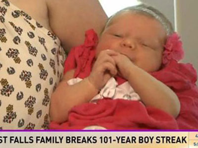 Một dòng họ ở tiểu bang Idaho, Mỹ vừa chấm dứt tình cảnh “dương thịnh âm suy” khi bé gái đầu tiên ra đời sau hơn 100 năm chờ đợi.