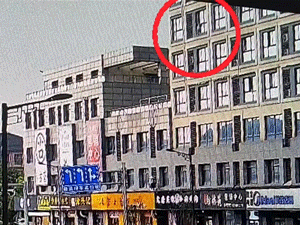 Sau khi leo ra ngoài cửa sổ căn phòng trên tầng 5, bé gái đã trượt tay rơi xuống rồi va vào biển quảng cáo dưới sảnh. Rất may mắn một nhân viên ngân hàng đã bắt được em vào đúng thời điểm nguy cấp.