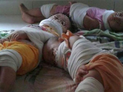 Đứa trẻ vô cùng đau đớn sau khi bỏng nặng phần bụng và háng do bị đổ nước sôi vào bộ phận sinh dục.