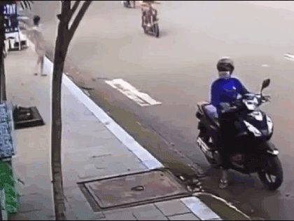 Người đàn ông vào cửa hàng giả vờ mua thuốc lá nhưng quay ra trộm bao gạo rồi phóng xe tẩu thoát.