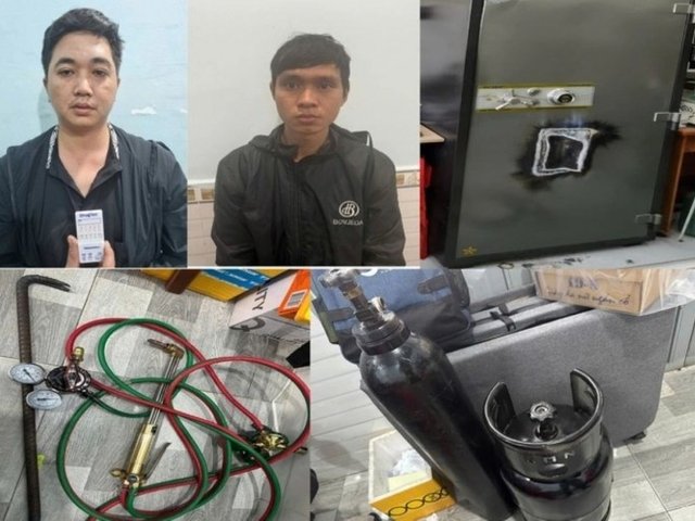 Trang 1Mang đèn khò, bình gas đột nhập tiệm vàng giữa đêm để phá két sắt, 2 đối tượng bị bắt quả tang