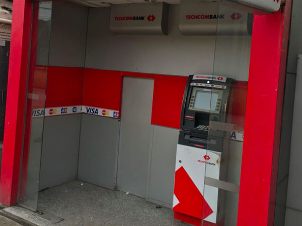Khi bảo vệ đến kiểm tra thì phát hiện một người đàn ông bịt mặt dùng máy cắt sắt phá cây ATM của ngân hàng Agribank ở Bình Dương để trộm tiền.