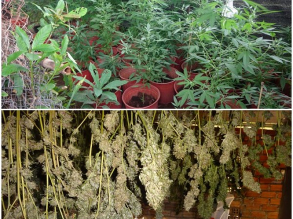 Quá trình kiểm tra hành chính số nhà 94 Khương Đình, quận Thanh Xuân, tổ công tác phát hiện bên trong tủ vải của căn nhà có 4 chậu cần sa, trong tủ quần áo bằng gỗ cất giấu 103 cành lá cần sa và 1 khay kim loại chứa cần sa.