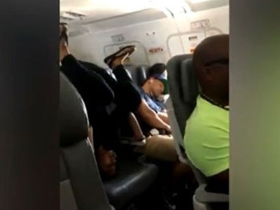 Một phụ nữ thực hiện tư thế yoga trồng cây chuối mà không hề làm người ngồi cạnh tỉnh giấc trên chuyến bay từ Mỹ sang Mexico tuần trước.