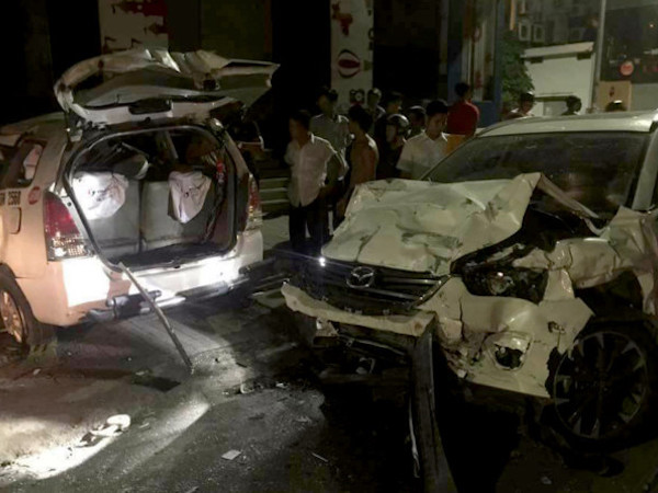 Xảy ra va chạm cực mạnh với ô tô khiến 3 thanh niên đi xe máy “bay” từ đường lên vỉa hè nằm bất động vào rạng sáng 2.7.