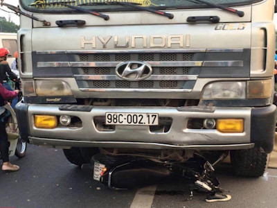 Xe tải cán tử vong cô gái trên phố Hà Nội