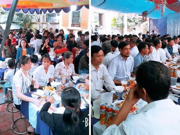 Hình ảnh ăn cỗ cưới đặc biệt khi đàn ông ngồi riêng một dãy, phụ nữ ngồi tách riêng một dãy khác khiến dân mạng xôn xao bàn luận.