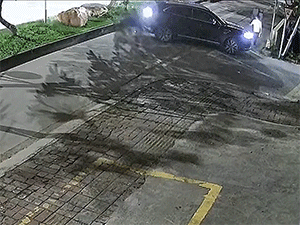 Bất ngờ bị chiếc xe mất lái lùi trúng, người thanh niên may mắn ngã vào ngay bên cạnh tảng đá lớn ven đường nhờ đó chiếc xe đã bị vướng và không thể cán phải nạn nhân.