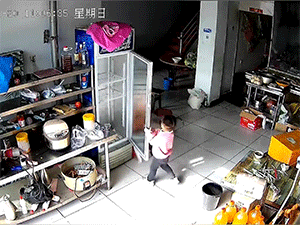 Cha có phản ứng 'xuất thần' khi thấy con gái sắp bị chiếc tủ lạnh đè trúng