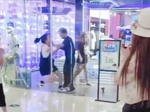Vụ đánh nhau của cặp đôi một già một trẻ làm náo loạn cả một góc trung tâm mua sắm.