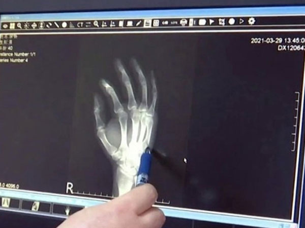 Bực tức vì con không chịu làm bài, người cha họ Xu đập tay xuống bàn khiến lòng bàn tay bầm tím, sưng tấy và đau nhức kéo dài.