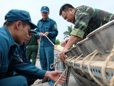 Sáng 1/9, một ngày trước khi diễn ra lễ Mít tinh kỷ niệm 70 năm Cách mạng Tháng Tám và Quốc khánh 2/9, tại nhiều điểm bắn pháo hoa tầm cao ở Hà Nội, các chiến sĩ quân đội đang gấp rút lắp trận địa để chuẩn bị cho chương trình bắn pháo hoa nghệ thuật.
