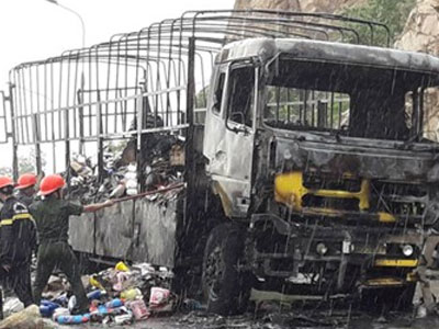 Đang chạy, xe tải bất ngờ cháy rụi
