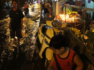 Người Sài Gòn cúng giải hạn trong... nước ngập