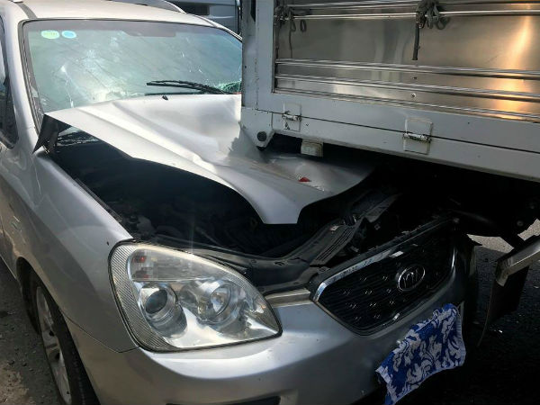 Chiếc xe tải hạng nặng đã đâm vào đuôi một chiếc xe container, đẩy chiếc xe container đâm vào hai ô tô khác, 4 chiếc xe va chạm choán hết cả hai chiều đường cao tốc khiến giao thông ách tắc.