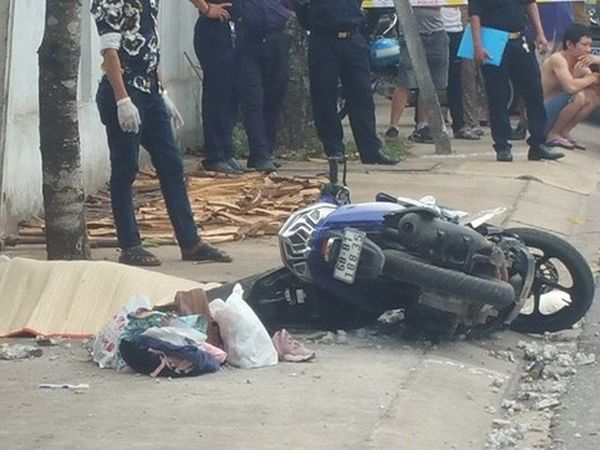 Mẹ chở con gái 6 tuổi đi học ở Bình Dương. Xe máy trượt bánh vào vùng lầy và ngã xuống đường cùng lúc xe bồn lao tới, cán chết bé gái.