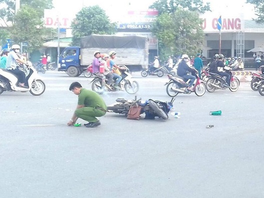 Đang trên đường chở người bạn về nhà, thì lốp sau của xe máy bất ngờ phát nổ khiến cô gái đội mũ bảo hiểm lưỡi trai không đảm bảo quy chuẩn, ngã xuống đường và tử vong tại chỗ, người bạn ngồi sau bị thương được đưa đi cấp cứu.