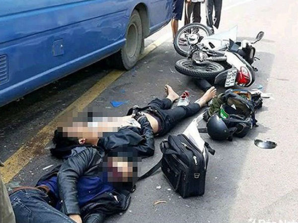 Đang chạy trên quốc lộ 18 ở Quảng Ninh, hai chiếc xe máy va chạm nhau rồi lao vào đầu ôtô khiến hai người chết.