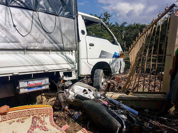 Chiếc xe tải đang lưu thông thì bất ngờ mất lái, tông vào xe máy khiến cụ ông 70 tuổi tử vong tại chỗ, cụ bà 62 tuổi bị thương nặng.
