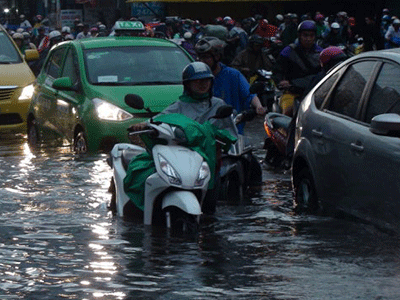Chiều tối 9-9, TP.HCM tiếp tục hứng cơn mua to, kéo dài làm nhiều nơi ngập nước.