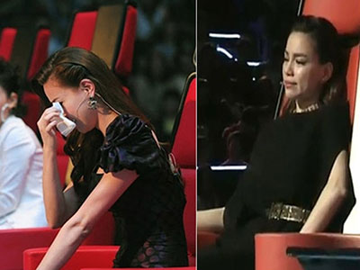 Cô bé đứng giữa sân khấu khóc nấc lên từng hồi trong khi nhạc vẫn chơi và máy vẫn quay. Thậm chí, còn có những góc máy quay cận gương mặt đang đầm đìa nước mắt của em.