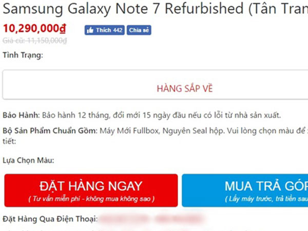 Galaxy Note 7 tân trang bất ngờ được chào giá chỉ còn hơn 10 triệu đồng